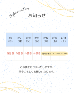 11日(土曜日)13日(月曜日)25(土曜日)は休診日となっております。
