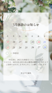 22日(土曜日)29日(土曜日)は休診日となっております。