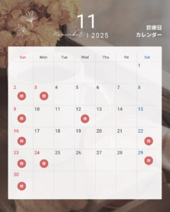 2025年11月の診療カレンダーです。
